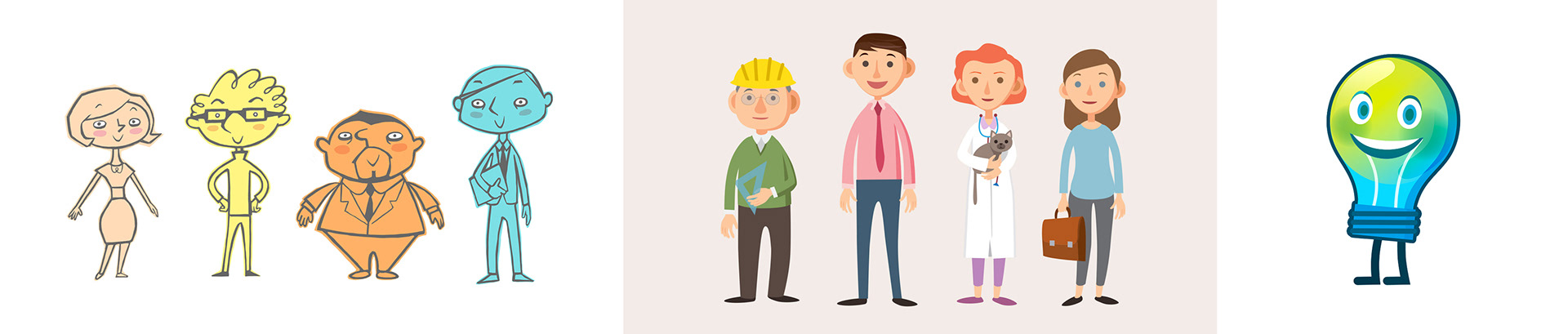 Diseños de personajes para vídeos corporativos didácticos.